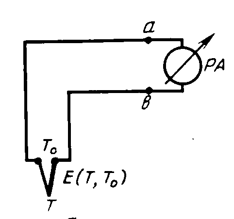 Схема подключения термопары к милливольтметру приведена на рисунке 1.1.