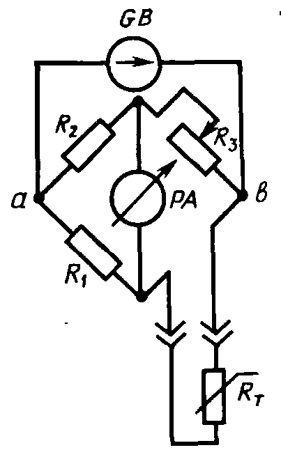 Рис. 1.4. Схема измерения термосопротивления с помощью уравновешенного моста