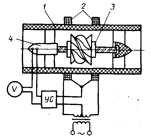 Рис. 3.1. Схема турбинного тахометрического расходомера: