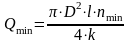Нижний предел измерения расхода жидкости определяем по формуле