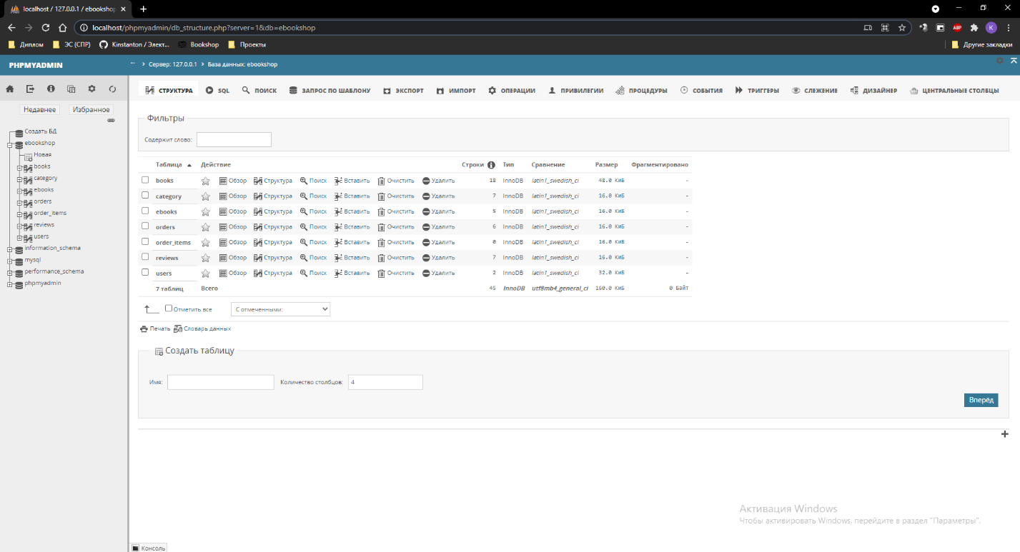 Чтобы создать базу данных для сессий и миграций Codeigniter были выполнены следующие команды в MySQL: