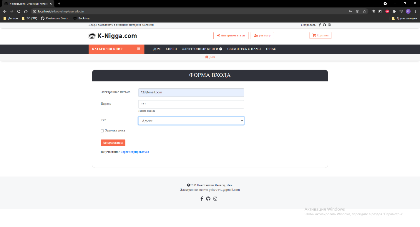 Страница входа в личный кабинет представлена на рисунке 24. Здесь можно ввести учетные данные для входа на сайт в качестве администратора или оператора. Но пока системой предусмотреть только пользователь – администратор.