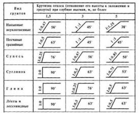 Таблица. 1. Крутизна откосов от вида грунтов