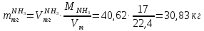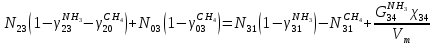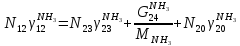 Расчет количеств аммиака, водорода, азота и метана в продувочных газах: