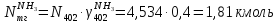 Расчет количеств водорода, азота и аммиака в танковых газах: