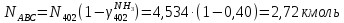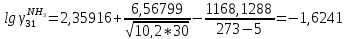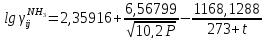 При охлаждении газа происходит частичная конденсация NH3, устанавливается равновесие между жидкостью и газом, причем концентрация аммиака после конденсации в газе, является функцией температуры и давления и определяется по формуле: