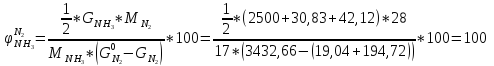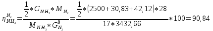 Степень превращения аммиака по азоту