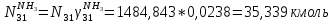 Выход аммиака по азоту: