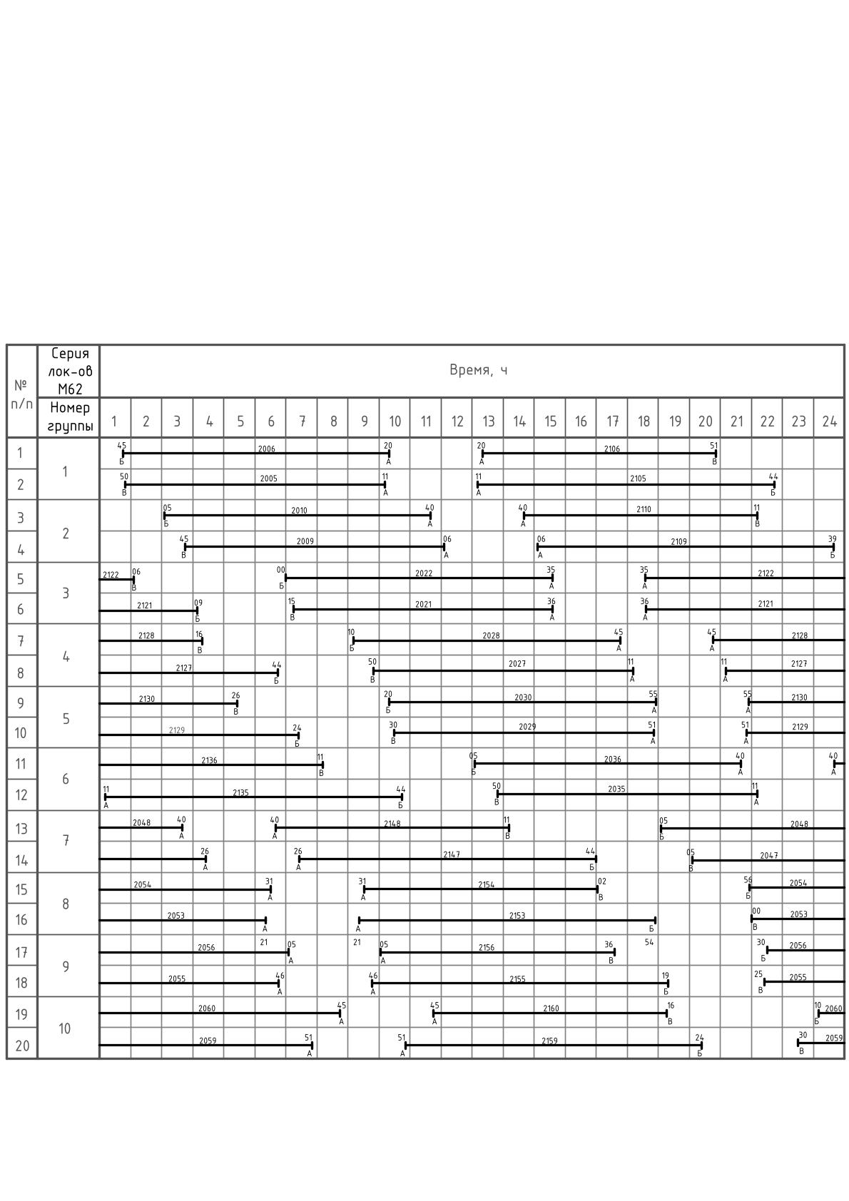 Таблица В.3 – Ведомость оборота локомотивов на участке В–А–Б