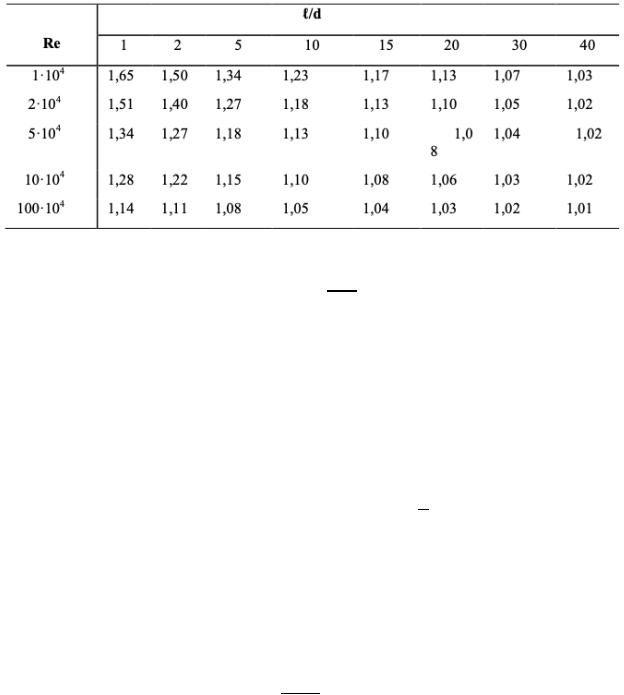 l - поправка, учитывающий влияние на теплоотдачу процесса гидродинамической стабилизации потока на начальном участке теплообмена (см. таблицу 2).