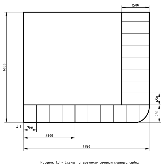 2) в плоскости сплошных флоров устанавливают поперечная полупереборка, в остальном сечении ничего не устанавливается. Полупереборка по высоте от палубы до днища.
