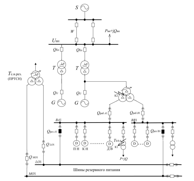 Исследовать режим самозапуска электродвигателей собственных нужд при повреждении в цепи рабочего питания и при переходе системы с собственных нужд на резервное.