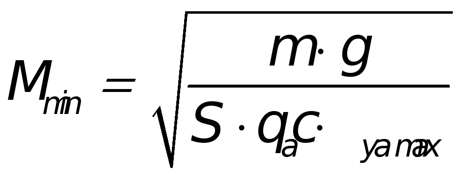 Минимальное число Маха установившегося горизонтального полёта определяется по формуле: