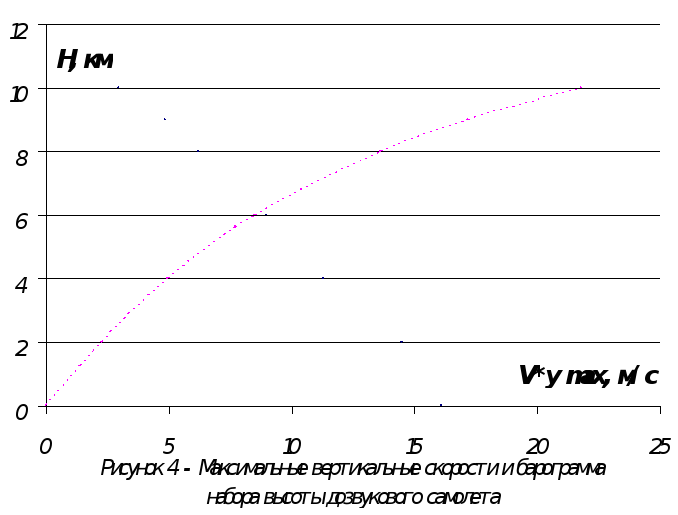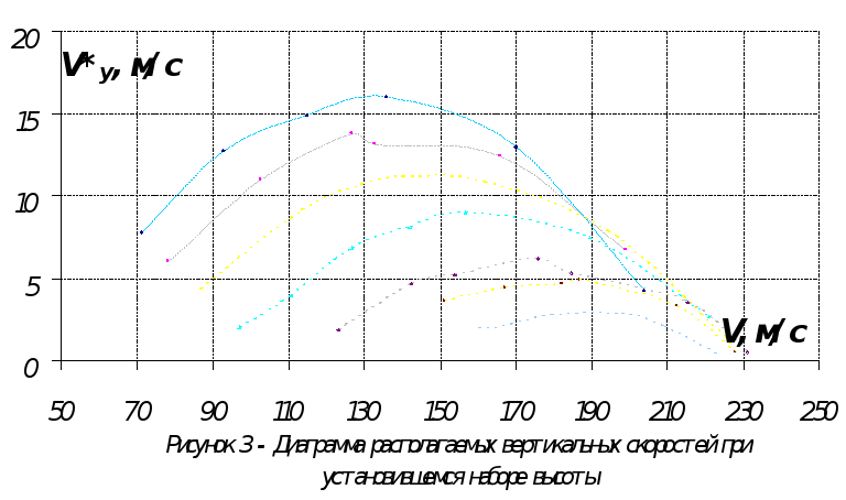 и строятся кривые V*y = ƒ(V) для каждой выбранной высоты полёта (рис. 3). По графикам для каждой высоты определяются наибольшие значения вертикальных скоростей V*y max и со-ответствующих им скоростей набора высоты Vнаб .