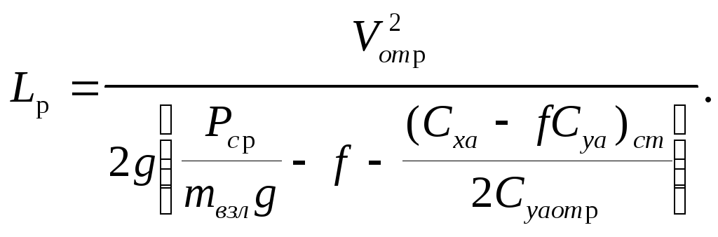 Для приближённых расчетов Lр определяется при среднем значении перегрузки nxaср, соответствующей средней скорости