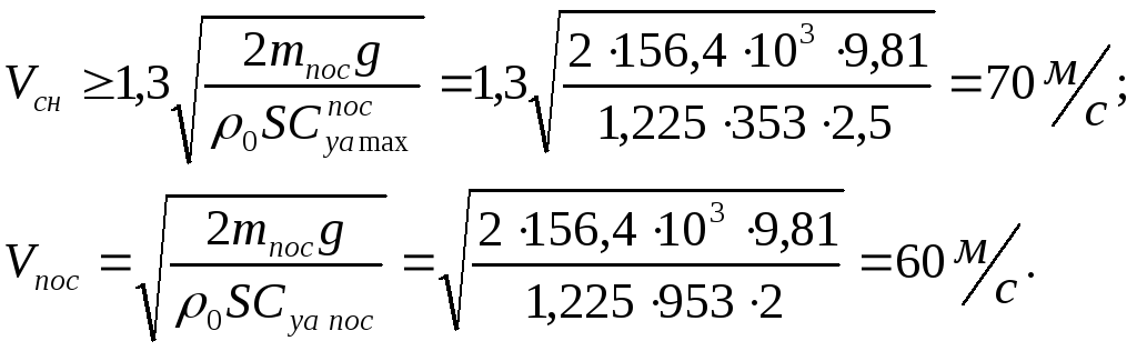 Посадочный угол атаки αпос= αотр=100, тогда Сyaпос=2.