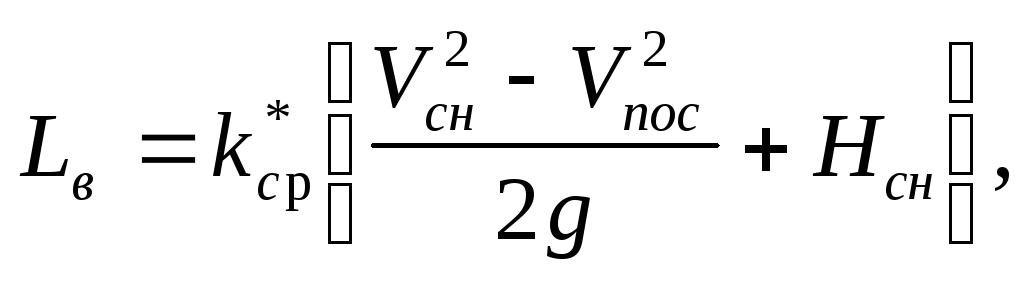 где k*ср – условное воздушное качество самолёта в посадочной конфигурации с работающим двигателем на воздушном участке (k*ср=7). Высота начала посадочного снижения принимается H=15м.