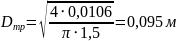 Диаметр необходимого трубопровода, м:
