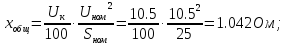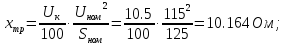 Для того, чтобы посчитать сопротивления высшей и низшей обмотки (активное и реактивное), необходимо сначала рассчитать общее сопротивление трансформатора по следующей формуле: