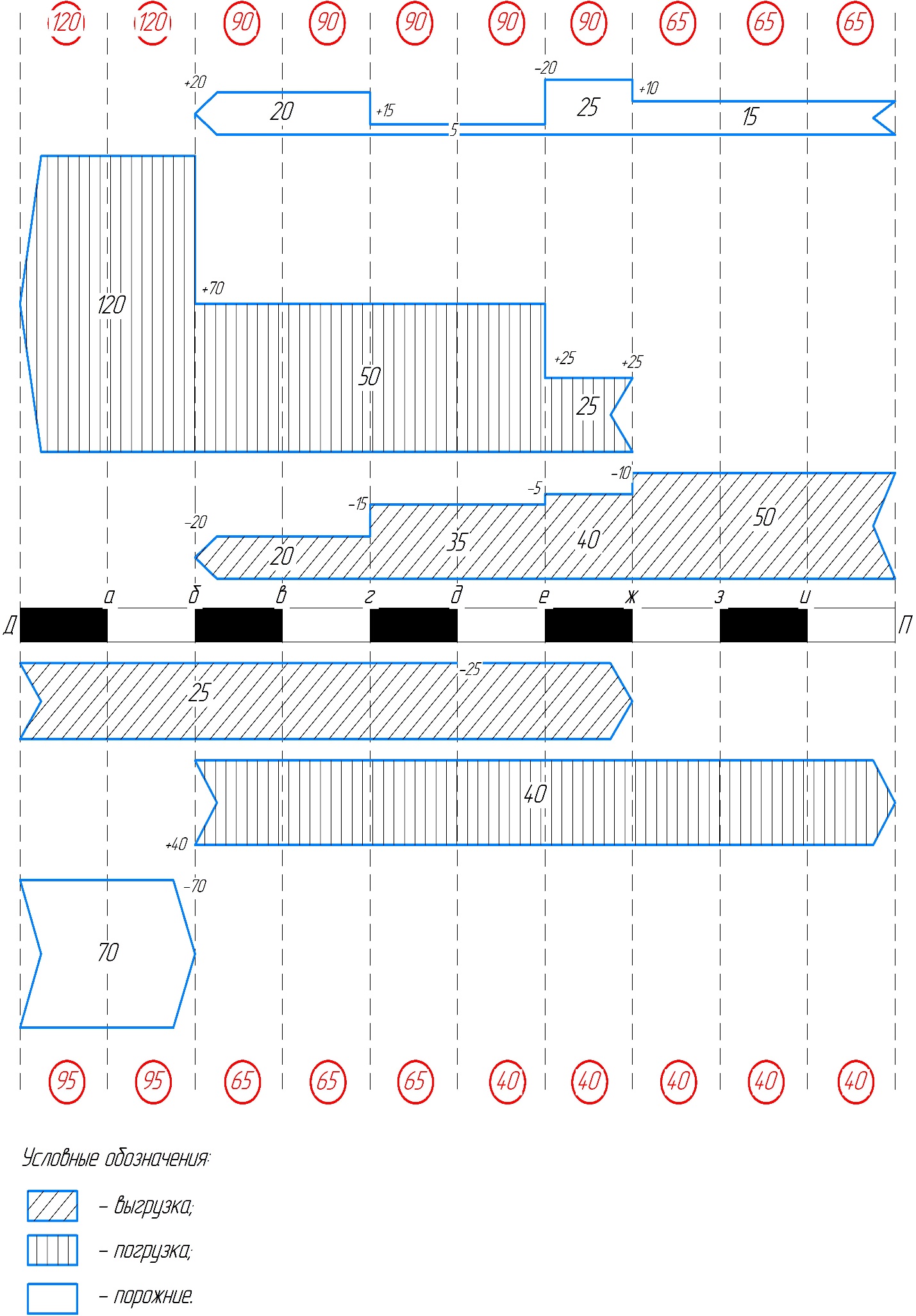 Рисунок 2.2 – Диаграммы местных вагонопотоков для участка П-Д