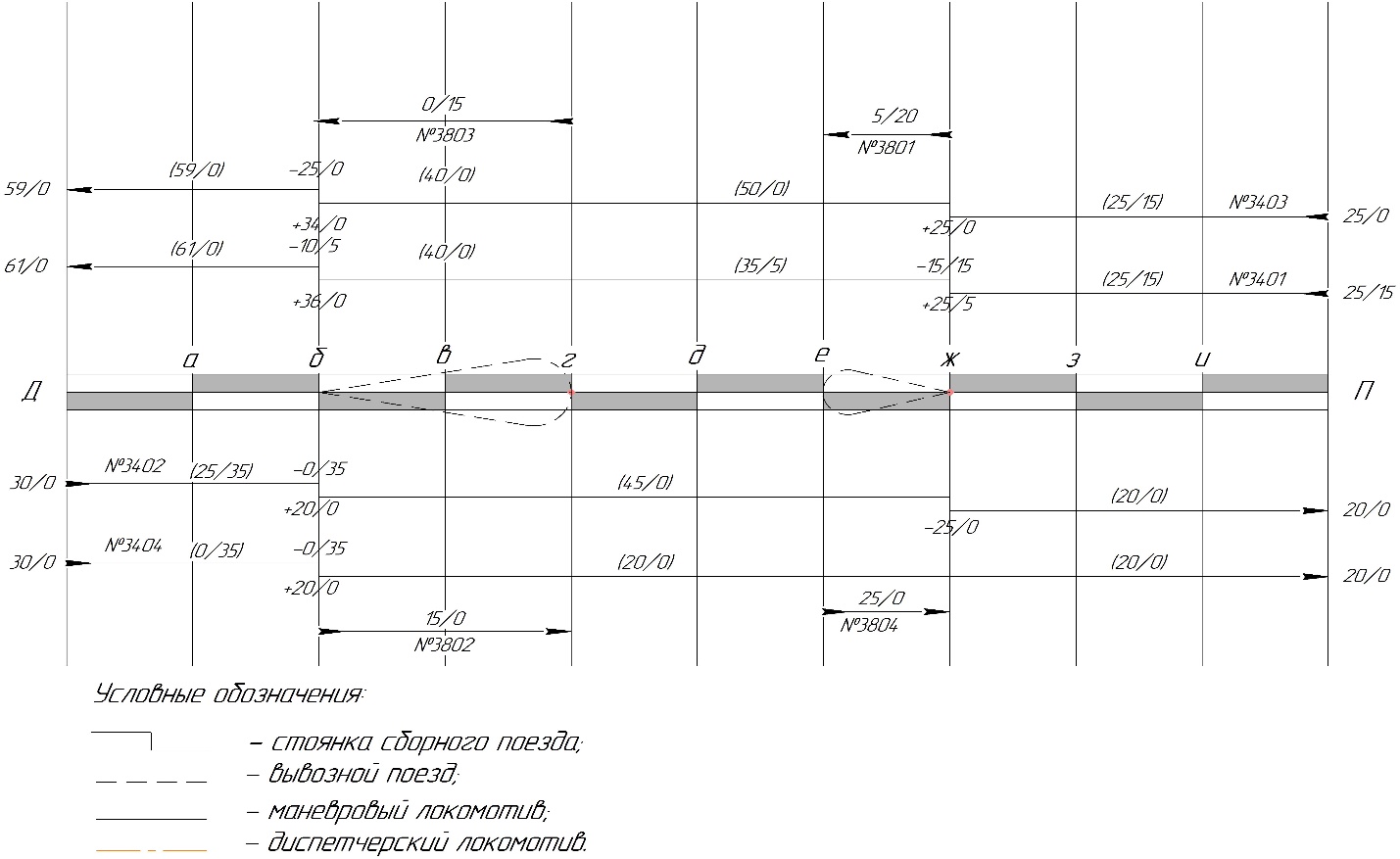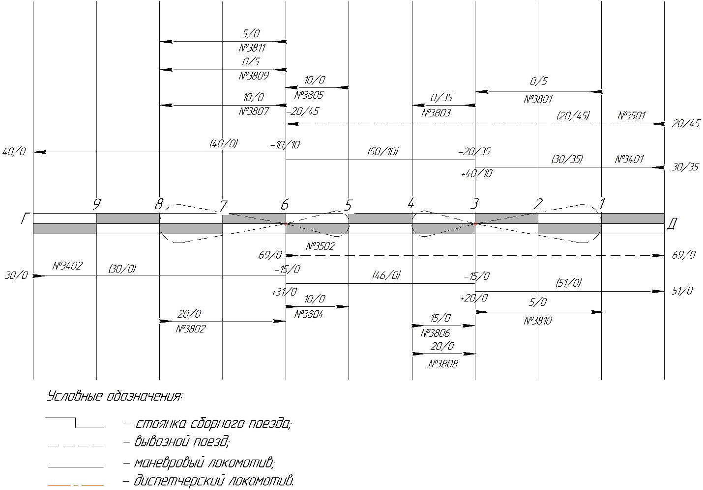 Рисунок 2.4 – Схема обслуживания участка Г-Д местными поездами по улучшенному варианту