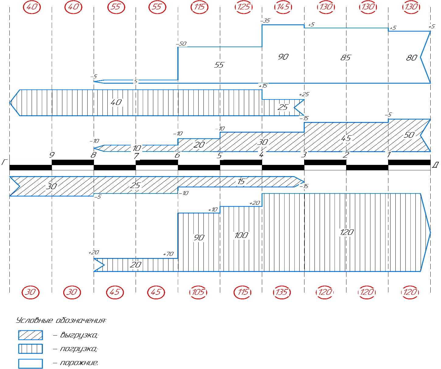 Рисунок 2.1 – Диаграммы местных вагонопотоков для участка Г-Д