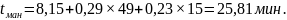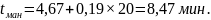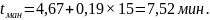 3. Прицепка локомотива к вагонам – 0,08 мин;