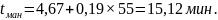 3. Прицепка локомотива к вагонам – 0,08 мин;