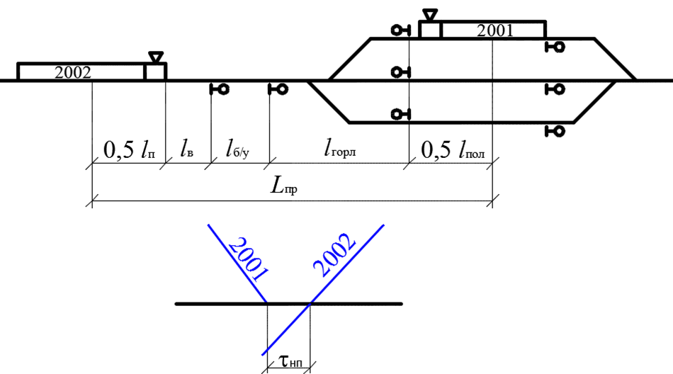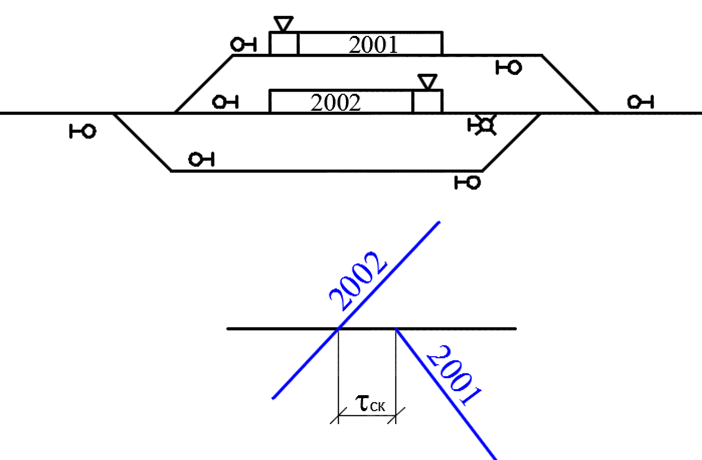Рисунок 3.4 – Расчетная схема для определения интервала скрещения поездов