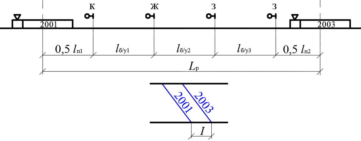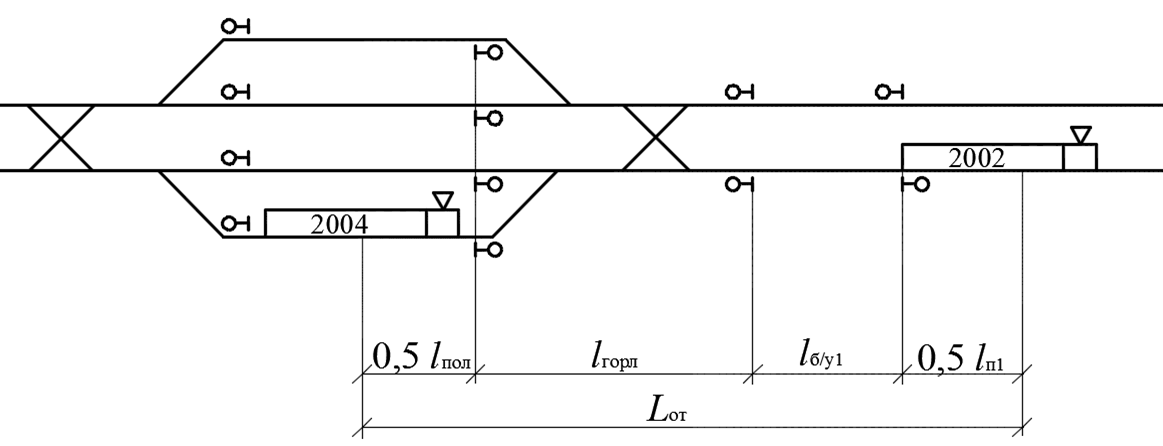 Расчетная схема для определения интервала скрещения поездов приведена на рисунке 3.4.