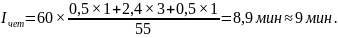 Интервал попутного прибытия рассчитан по формуле, мин: