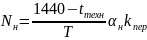 Наличная пропускная способность однопутного перегона определяется по формуле, пар поездов:
