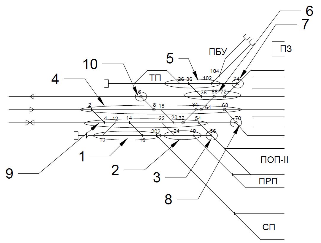 Рисунок 3. 2 – Конструктивная схема центральной горловины участковой станции полупродольного типа