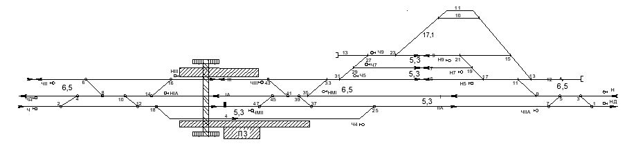 сортировочный парк – 6 путей.