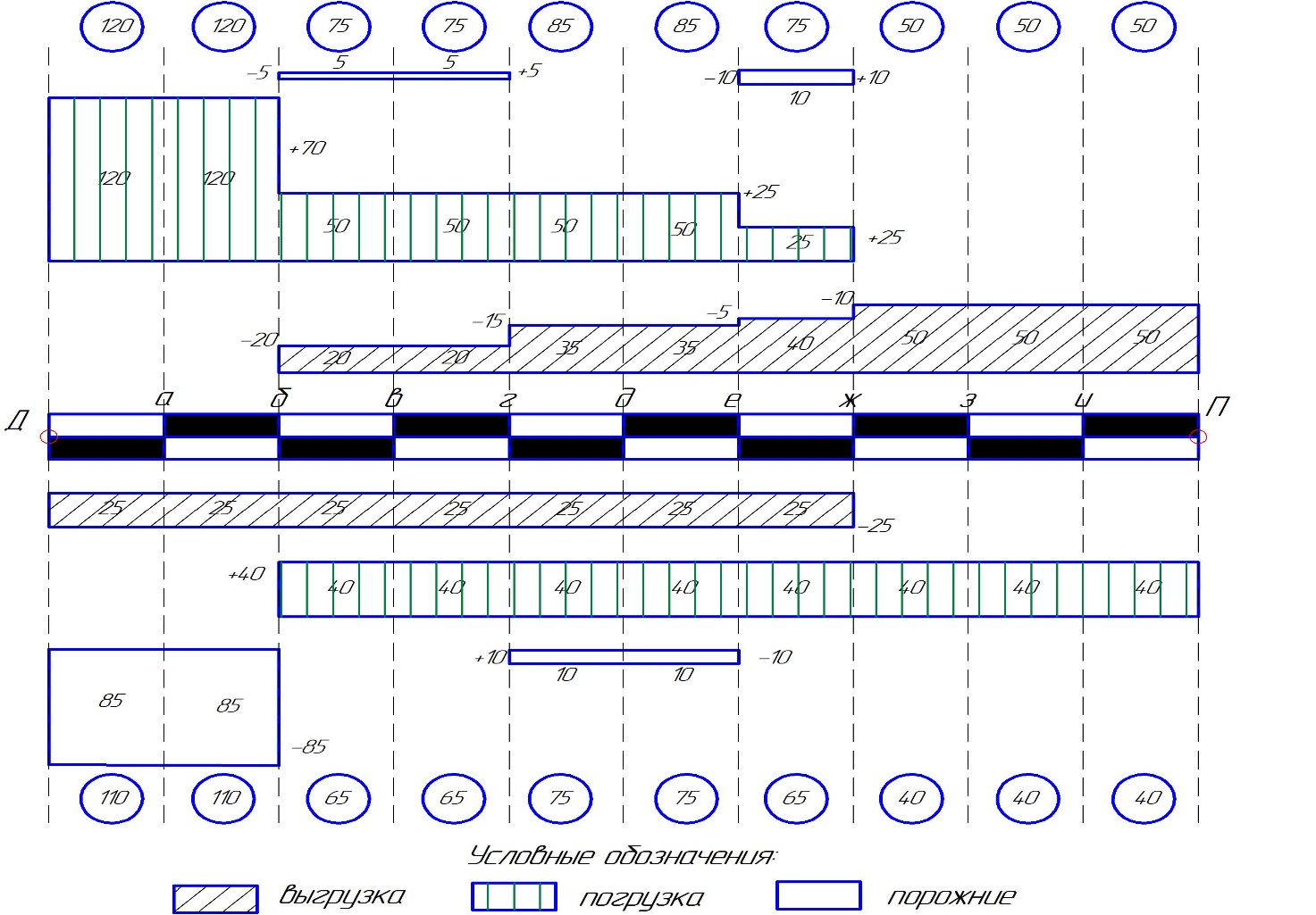 Рисунок 2.1 - Диаграмма местных вагонопотоков на участке Г – Д
