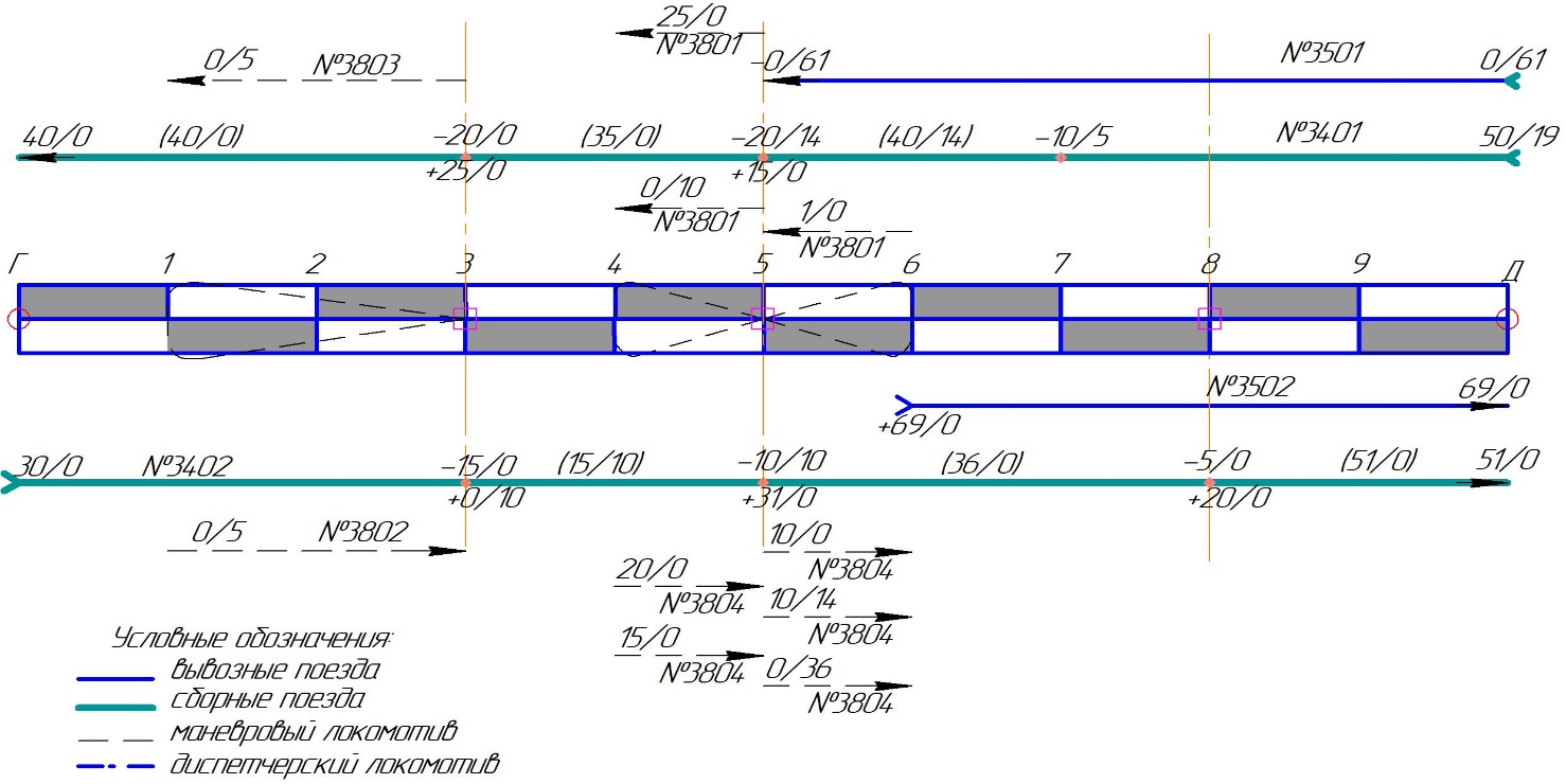Рисунок 2.3 - Схема обслуживания участка Г - Д местными поездами