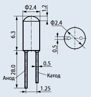 Рисунок 12 - размеры светодиода АЛ107Б