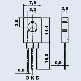 Рисунок 14 - размеры транзистора КТ815Б