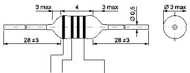 В данном устройстве используется 1 дроссель EC24 (L1). Дроссель серии EC24 - представляет собой миниатюрную катушку с ферритовым сердечником, размещенную в изолирующем корпусе с двумя выводами. Технические параметры дросселя серии EC24 представлены в таблице 11. Изображение с размерами дросселя серии EC24 представлено на рисунке 15.