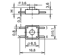 Рисунок 16 - размеры тактовой кнопки ПКН-159-3