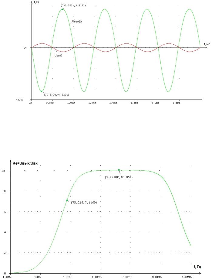 Рисунок 4.3.3 – Осциллограммы входного и выходного сигналов усилительного каскада