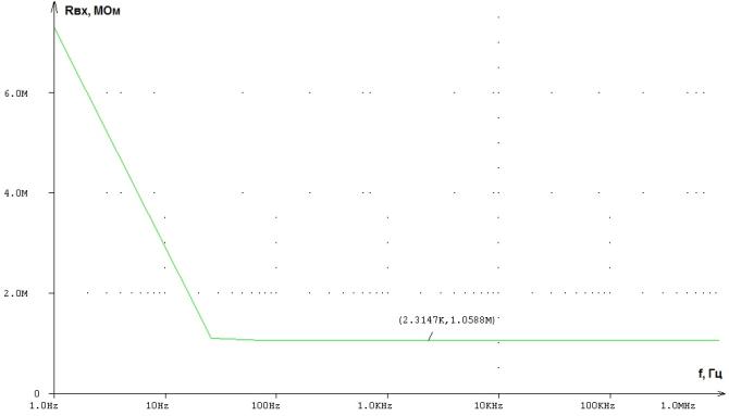 Рисунок 4.4.1 - График зависимости входного сопротивления усилительного каскада от частоты
