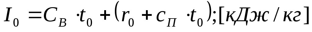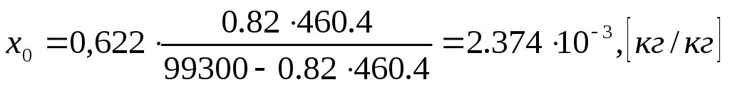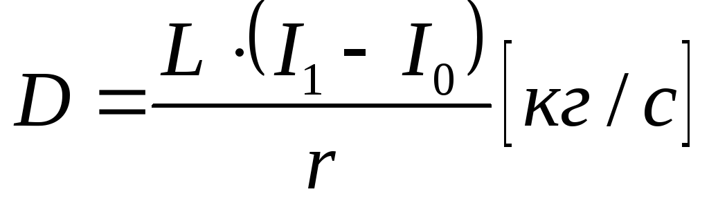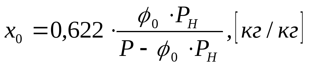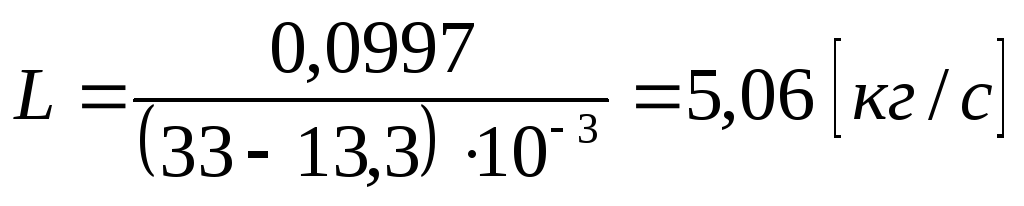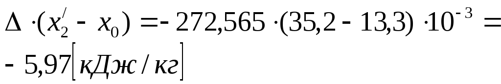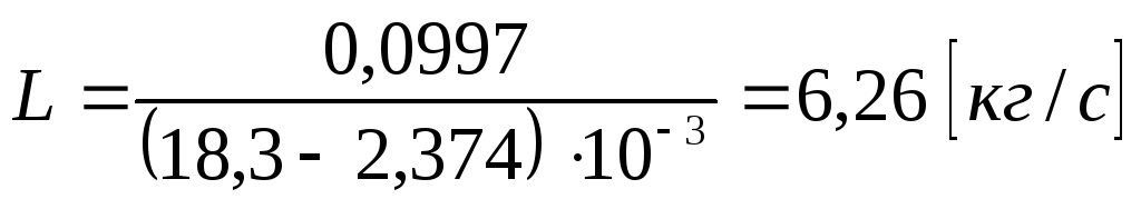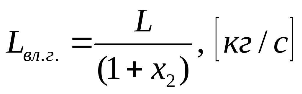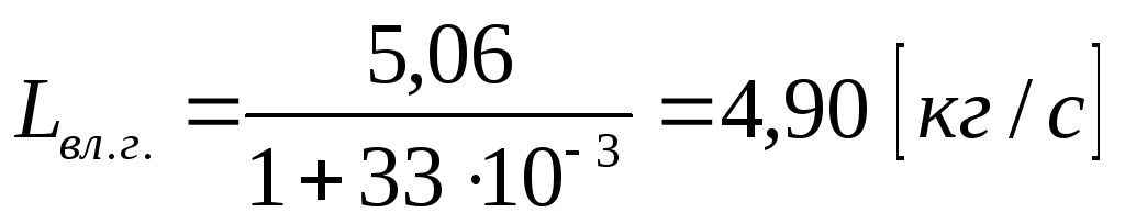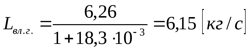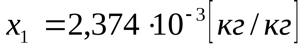 Массовый расход абсолютно сухого воздуха (в составе сушильного агента) рассчитываем, используя результаты построения процесса сушки на I – х диаграмме: