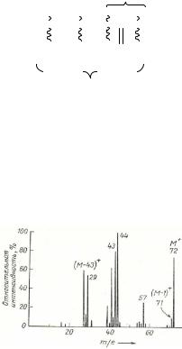 , 72, : + m/e = 72; ( 1) m/e = 71, -