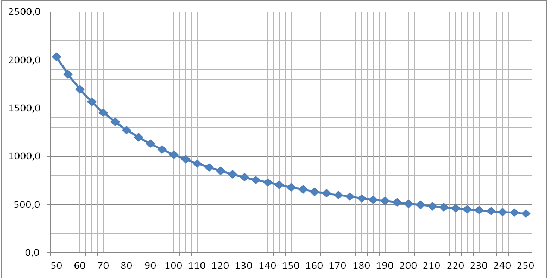 вихідних даних. В результаті одержали розподіл тиску на стінках вимірювального