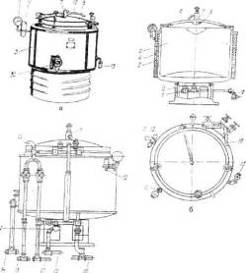 До відкидної кришки приєднаний ричаг з противагою, для щільного прилягання кришки використовують затискачі. Сорочка котла складається з циліндричного резервуара та дна. Гріюча пара в сорочку подається через патрубок, виведення конденсату з парової сорочки проходить через патрубок, а вміст котла зливають через вентиль.