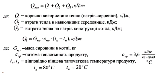Оскільки котел заповнюється на 0,8 свого об'єму (варильного резервуару) приймаємо об'єм котла 713 дм3 або 0,713 м3