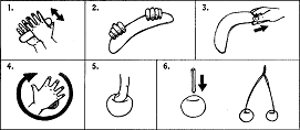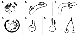 а) скочування (рухом напівзігнутих долонь хрест-навхрест скочується кулька);