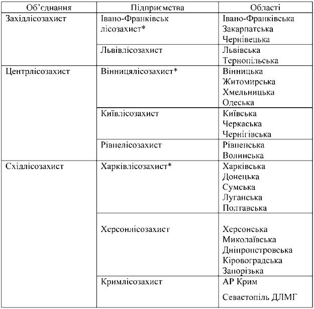 (області - Івано-Франківська, Закарпатська,Чернівецька) Львівлісозахист (області - Львівська, Тернопільська);