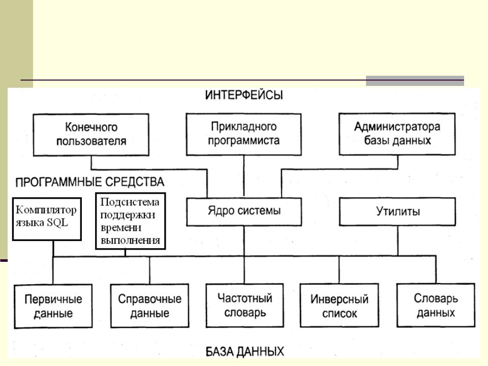 Среда – совокупность интерфейсных модулей, обеспечивающих связь пользователей с ядром и через него с БД. Включает: